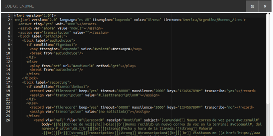 Construir un sistema de atención telefónica automatizada interactiva (IVR) nunca fue tan facil como arrastrando y soltando componentes en un guión. Además, el lenguaje de programación de guiones enjiXML, basado en XML, permite construir aplicaciones complejas en pocos minutos. Enjix provee una serie de herramientas que cubren todo tipo de situaciones. Desde reproductores de audio y traductores de texto a voz, bloques condicionales, bucles de repetición y condiciones de tiempo, hasta reconocimiento de voz e interacción via API con aplicaciones y sistemas.