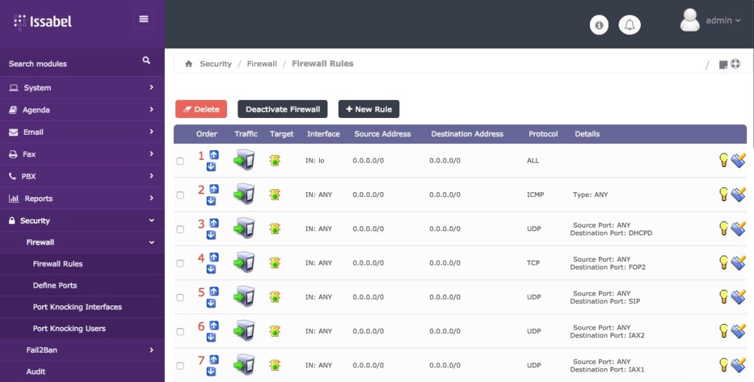 Troncales de cualquier proveedor VOIP (y propios vía gateway), rutas entrantes y salientes, IVRs, grupos de timbrado, colas de atención, condiciones de tiempo, derivación condicional de llamadas, follow-me, funcionalidades extendidas en forma modular.